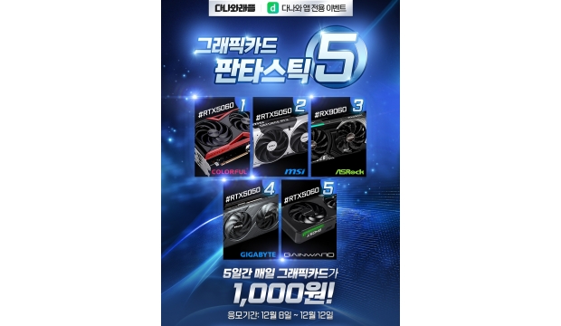 - “한 해 동안 받은 사랑, 1천원의 구매로 보답” 5일간 ‘연말 결산’ 래플 진행 - RTX 5060, RX 9060 등 2025년 하반기 인기 그래픽카드 선보여 - 당첨 안 돼도 100% 환불 ‘제로 리스크’... 5일 개근 시 상품권 증정 혜택까지 이커머스 전문기업 커넥트웨이브가 운영하는 가격비교 서비스 다나와가 연말 시즌을 맞아 최신형 그래픽카드를 1천원에 구매할 수 있는 '연말 결산 다나와 래플' 이벤트를 개최한다고 8일 밝혔다. 오는 12일까지 5일간 진행되는 이번 행사는 고물가로 PC 부품 구매를 망설였던 소비자를 위해 기획된 '2025년 다나와 래플 피날레' 성격의 프로모션이다. 이에 한 해 동안 다나와 래플에 보내준 성원에 보답하는 차원에서 소비자들이 가장 선호하는 ‘그래픽카드’를 핵심 경품으로 선정했다. 경품 라인업은 게이머들의 수요가 가장 높은 실속형 고성능 모델들로 준비했다. ▲8일 RTX 5060을 시작으로 ▲9일 RTX 5050 ▲10일 RX 9060 ▲11일 RTX 5050 ▲12일 RTX 5060 등 매일 새로운 그래픽카드를 선보인다. 각각의 경품마다 당첨자는 1명이며 소비자는 단돈 1천원만 결제하면 최신 하드웨어를 얻을 수 있는 것이 특징이다. 참여 방식은 ‘다나와 앱(App)’ 전용으로 진행해 접근성을 높였다. 앱 내 ‘다나와 래플’ 게시판에서 원하는 경품에 응모(결제)하면 된다. ‘제로 리스크(Zero Risk)’ 방식으로 운영되어, 당첨되지 않더라도 결제한 1천원은 전액 자동 환불된다. 당첨자는 오는 16일 다나와 게시판을 통해 발표된다. 또 단순 응모의 재미를 넘어 ‘개근상’ 혜택도 마련했다. 5일간 진행되는 래플에 모두 참여한 고객 중 추첨을 통해 선정된 100명에게는 편의점 상품권(5천 원권)을 증정해 당첨 여부와 관계없이 소소한 즐거움을 느낄 수 있도록 했다. 다나와 관계자는 “올 한 해 PC 부품 가격 변동으로 업그레이드를 미뤄왔던 이용자들에게 연말 선물 같은 이벤트를 제공하고자 했다”라며, “내년에도 소비자들이 가격비교의 실속과 득템의 재미를 동시에 느낄 수 있는 다양한 래플 이벤트를 지속해서 선보일 것”이라고 말했다. 한편, 이벤트에 대한 자세한 내용은 다나와 앱 검색창에 ‘다나와래플’을 검색하면 확인할 수 있다. [용어설명] 래플(Raffle) : 당첨자에 한해 구매가 가능한 판매 방식 |