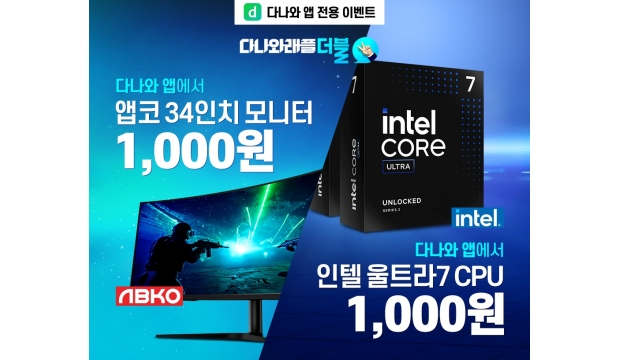 - 3일부터 오는 14일까지 다나와 앱 통해 1천원 추첨 판매 진헹 - 다나와 앱 설치 후 검색창에 ‘다나와래플’ 입력하면 행사 페이지로 이동 - 회차별 5일간 참여 시 추첨 통해 20명에게 편의점 상품권 5천원 증정 최신 중앙처리장치(CPU)와 34인치 모니터를 1,000원에 구매할 수 있는 프로모션이 열린다. 이커머스 전문기업 커넥트웨이브가 운영하는 가격비교 서비스 다나와가 오는 14일까지 ‘인텔 울트라7 CPU’와 ‘앱코 34인치 모니터’를 1천원에 판매하는 래플 이벤트를 진행한다고 3일 밝혔다. 래플은 무작위 추첨을 통해 당첨자에게 구매 자격을 부여하는 판매 방식으로, 이번 프로모션은 다나와 앱(App)을 통해서만 참여할 수 있다. 행사는 총 2회에 걸쳐 실시한다. 1회차는 3일부터 7일까지 '앱코 34인치 모니터'를 응모할 수 있고, 2회차인 10일부터 14일까지는 ‘인텔 울트라7 CPU’에 응모할 수 있다. 참여 방법도 간편하다. 다나와 앱 내 '다나와 래플' 게시판에서 회차별 5일의 응모 기간 중 하루만 참여해도 자동으로 이벤트에 응모되며, 추첨을 통해 최종 구매 자격을 얻게 된다. 당첨 결과는 11일과 18일 다나와 당첨자 게시판에서 각각 확인할 수 있다. 당첨자는 회차당 1명씩 총 2명이며, 미 당첨 시 결제 금액은 전액 자동 환불된다. 또 회차별로 5일간 매일 응모한 참여자를 대상으로 추첨을 통해 1회차 10명, 2회차 10명 총 20명에게 5천원 편의점 상품권을 증정한다. 다나와 관계자는 “이번 행사는 PC 사용자에게 필수라고 할 수 있는 모니터와 CPU 카테고리에서 인기 있는 제품을 준비해 보았다"면서 "PC 부품에 관심 있는 이용자들에게 유익한 기회가 될 것"이라고 말했다. 한편, 이벤트에 대한 자세한 내용은 다나와 앱을 설치한 뒤 검색창에 ‘다나와래플’을 입력하거나, ‘다나와 래플’ 게시판을 통해 확인할 수 있다. |