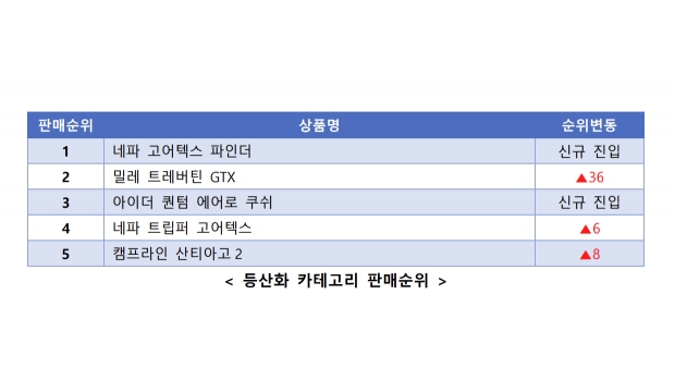 - 봄철 산행 수요 증가로 등산화 시장 급성장 - 고어텍스 기능성 제품, 상위권 점유 확대 - 2030 ‘관악 노마드’ 트렌드가 매출 상승 주도 봄철을 맞아 야외 활동이 본격화되면서 등산화 시장이 빠르게 성장하고 있다. 특히 수도권 근교 산행 수요가 늘며 기능성과 스타일을 동시에 고려한 제품 선호가 뚜렷해지는 모습이다. 이커머스 전문기업 커넥트웨이브가 운영하는 가격비교 서비스 '에누리 가격비교'는 이 같은 수요를 반영해 등산화 카테고리 매출액이 증가했다고 9일 밝혔다. 에누리 자료에 따르면 올해 3월 등산화 카테고리 매출액은 전월 대비 58%가 증가하며 본격적인 성수기에 진입한 것으로 나타났다. 이 같은 매출 증가는 봄맞이 등산 수요 확대가 주요 요인으로 분석된다. 특히 관악산 등 수도권 명소를 찾는 2030 세대의 ‘관악 노마드’가 증가하며 가벼우면서도 기능성을 갖춘 등산화 수요가 크게 늘어난 것이 영향을 미쳤다. 또한 변덕스러운 봄 날씨에 대응할 수 있는 방수 및 투습 기능 제품 선호도 상승도 한몫했다. 매출 순위에서는 고어텍스 소재 제품이 강세를 보이며 상위권을 장악했다. 1위, 2위, 4위를 모두 고어텍스 적용 제품이 차지하며 기능성 중심의 소비 패턴이 뚜렷하게 나타났고 신규 진입 제품과 기존 인기 제품 간 경쟁도 활발하게 전개되는 모습을 보이고 있다. 인기 상품 1위는 네파의 ‘고어텍스 파인더’로 고어텍스 인비저블 핏 기술을 적용해 가벼운 착화감과 뛰어난 방수 및 투습 기능을 동시에 제공하는 점이 특징이다. 2위를 차지한 밀레의 ‘트레버틴 GTX’는 세련된 디자인과 고어텍스 기반의 안정적인 착화 성능으로 전월 대비 매출이 601%가 증가하며 큰 폭의 상승세를 기록해 주목받고 있다. 에누리닷컴 관계자는 “봄철 산행 수요 증가와 함께 기능성과 스타일을 모두 갖춘 등산화에 대한 관심이 높아지고 있다”라며, “특히 고어텍스 제품을 중심으로한 프리미엄 등산화의 인기가 당분간 지속될 것으로 보인다”라고 말했다. |