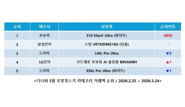 -장애물 회피·롤러형 물걸레·직배수 확산…프리미엄·가성비 양분 이커머스 전문기업 커넥트웨이브가 운영하는 가격비교 서비스 다나와는 최근 로봇청소기 시장이 AI 기술과 정교한 하드웨어를 결합한 ‘가사 해방’ 중심으로 빠르게 진화하고 있다고 3일 밝혔다. 시장 구조 역시 100만 원 이하 가성비 제품군과 프리미엄 제품군으로 나뉘며 소비자 선택 폭이 넓어지는 추세다. 2월 25일부터 3월 24일까지 다나와의 로봇청소기 거래액은 전년 동기 대비 5% 증가한 것으로 조사됐다. 올해 주요 트렌드는 ‘장애물 감지 및 회피 기능’ 고도화다. 삼성전자의 ‘AI 액체 인식’, 로보락의 ‘리액티브(Reactive) AI 3.0’ 등 기술을 통해 케이블과 액체 오염까지 인식하고 상황에 맞게 청소 모드를 자동으로 전환하는 수준까지 발전했다. 물걸레 기능도 한 단계 진화했다. 특히 롤러형 물걸레 제품이 확대되며 바닥 밀착력과 세정력이 개선됐고, 오염 감지 후 집중 청소, 자동 세척 및 탈부착 등 ‘풀 오토’ 기능이 프리미엄 제품의 표준으로 자리잡고 있다. 편의성에 아낌없이 투자하는 ‘시성비’ 트렌드에 따라 직배수 시스템 수요도 급증했다. 오수 배출과 정수 보충을 자동으로 처리하는 직배수 키트 포함 제품 구매는 전년 대비 124% 증가했다. 현재 시장은 로보락, 삼성전자, LG전자, 드리미 등이 기술 경쟁을 주도하고 있으며, 신제품과 함께 가성비 모델도 꾸준히 수요를 유지하고 있다. 다나와 거래액 기준(2월 25일~3월 24일) 인기 제품은 로보락 ‘S10 MaxV Ultra(화이트)’, 삼성전자 ‘비스포크 AI 스팀 VR7MD96516G’, 드리미 ‘L40s Pro Ultra’, LG전자 ‘코드제로 로보킹 AI 올인원 B95AWBH’ 등이 소비자들의 사랑을 받고 있다. 로보락의 ‘S10 맥스V 울트라'는 전작 대비 물걸레 성능과 흡입력을 한층 강화해 청소 완성도를 높였다. 분당 4000회 진동하는 비브라라이즈 5.0 확장형 음파 물걸레 시스템과 최대 3만6000파스칼(Pa)의 흡입력을 갖췄다. 또한 이중 문턱 기준 약 8.8cm 문턱을 넘을 수 있으며 높이 7.95cm의 낮은 공간까지 진입해 정밀한 탐색과 청소를 지원한다. 다나와의 관계자는 “로봇청소기는 사용자 개입을 최소화하는 방향으로 발전 중”이라며 “AI 인식 기술과 자동화 기능, 유지관리 편의성이 핵심 경쟁 요소로 자리잡고 있다”고 말했다. |